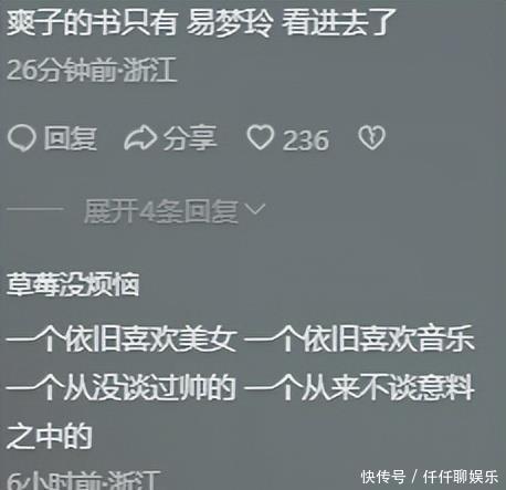 评论区里满是调侃和讥讽,还夹杂着不少刻板印象。胡彦斌还是喜欢漂亮姑娘,易梦玲还是热爱音乐,一个从没谈过帅哥,一个从不期待惊喜。易梦玲从小时候就怀揣音乐梦,长大后终于实现了。